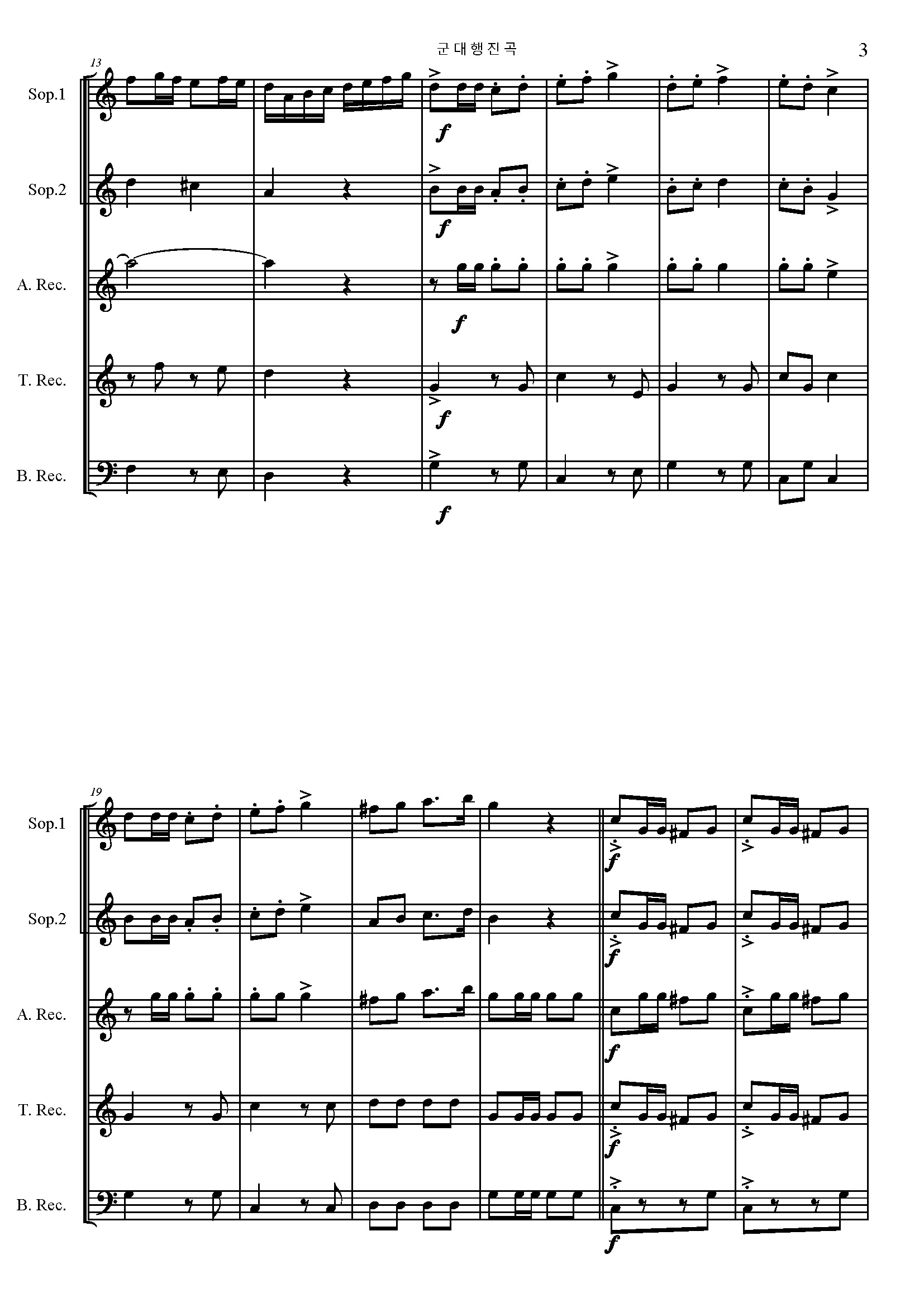 슈베르트 군대 행진곡 리코더5중주