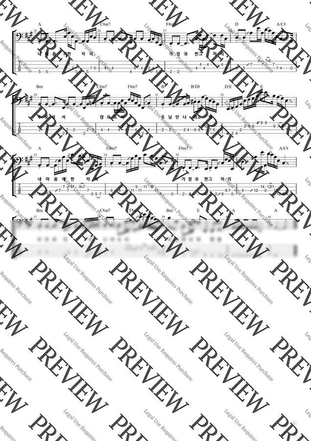 예수마을셀교회의 "내 마음의 한 자리" 찬양 베이스기타 악보입니다.
