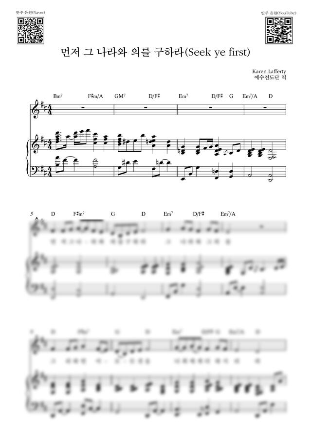 Karen Lafferty - 먼저 그 나라와 의를 구하라(Seek ye first)_D Key (피아노 3단) by Samuel Park