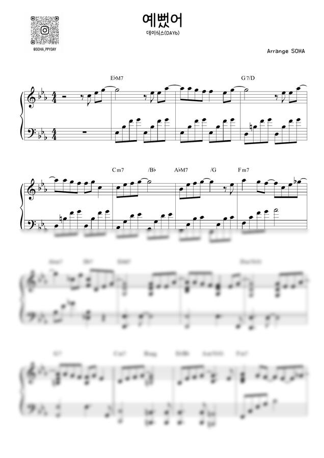 화제의 역주행 노래 ' 데이식스(DAY6) - 예뻤어 ' 하이라이트 부분에 대한 짧은 악보입니다:)