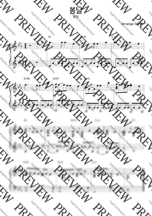 화제의 노래 ' BTS - 봄날 ' 하이라이트 부분에 대한 짧은 악보입니다:)