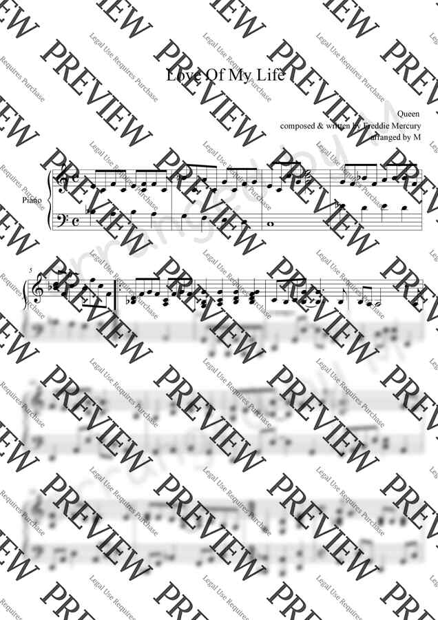 퀸(Queen) - Love Of My Life (원곡 ver.) 피아노 악보