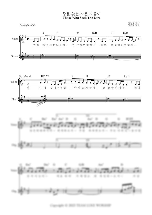 팀룩워십의 주를 찾는 모든 자들이 G키 보컬악보이며