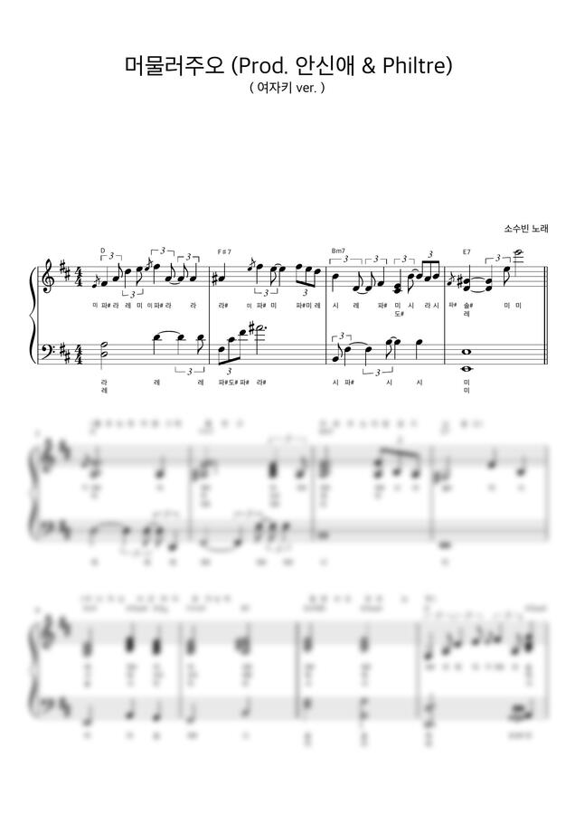가사는 포함되지 않으므로 기존 악보는 아래 링크를 참고해주세요