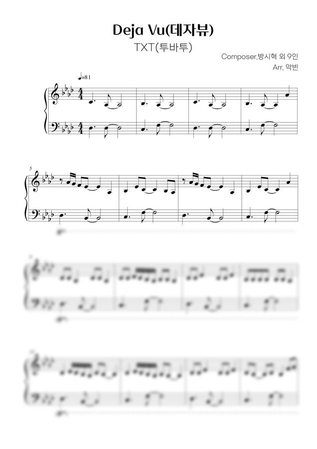 투바투의 데자뷰를 1절 길이의 쉬운 버전으로 만들어보았습니다.