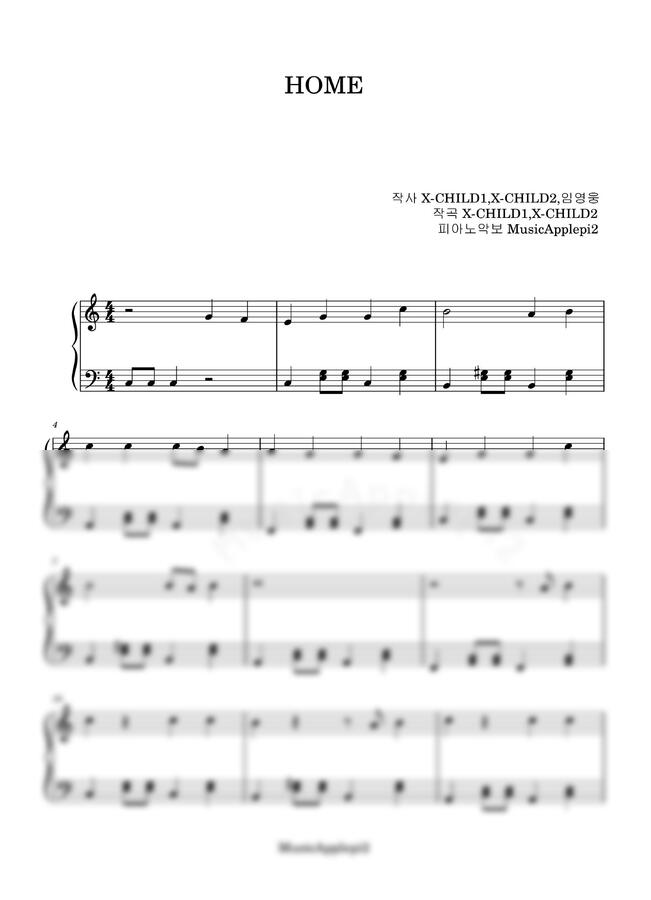 임영웅 - HOME/챌린지 (조표없는 쉬운악보) by 뮤직애플파이