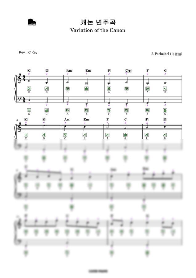 캐논 변주곡 다장조 쉬운 버전입니다. 큰 악보를 선호하시는 분들을 위해 크기를 조정한 악보입니다.