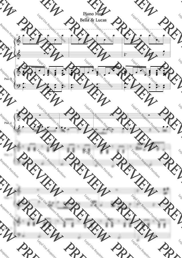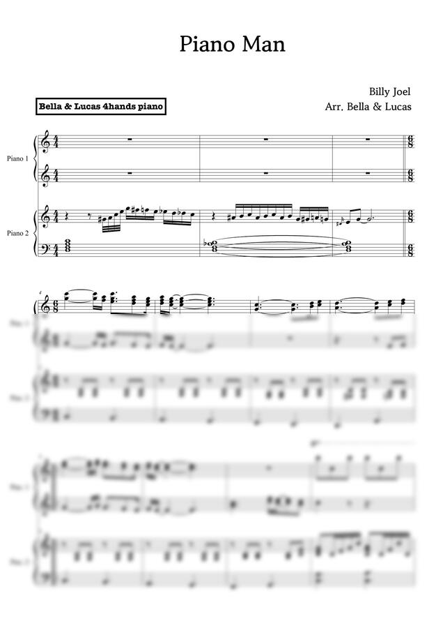 빌리 조엘의 피아노맨을 포핸즈로 편곡한 악보입니다!