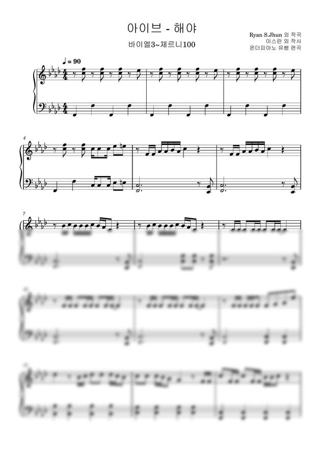 아이브(IVE) - 해야 바이엘3~체르니100 (원키, 조표X가단조, 손가락번호 포함) by 온더피아노 유쌤