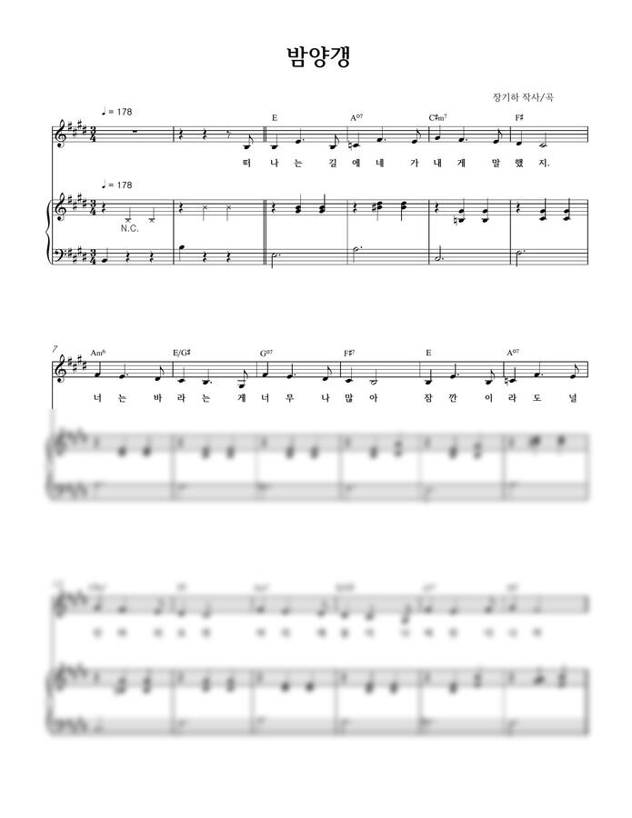 장기하 - 밤양갱-보컬,피아노-쉬움 by 악보다나와