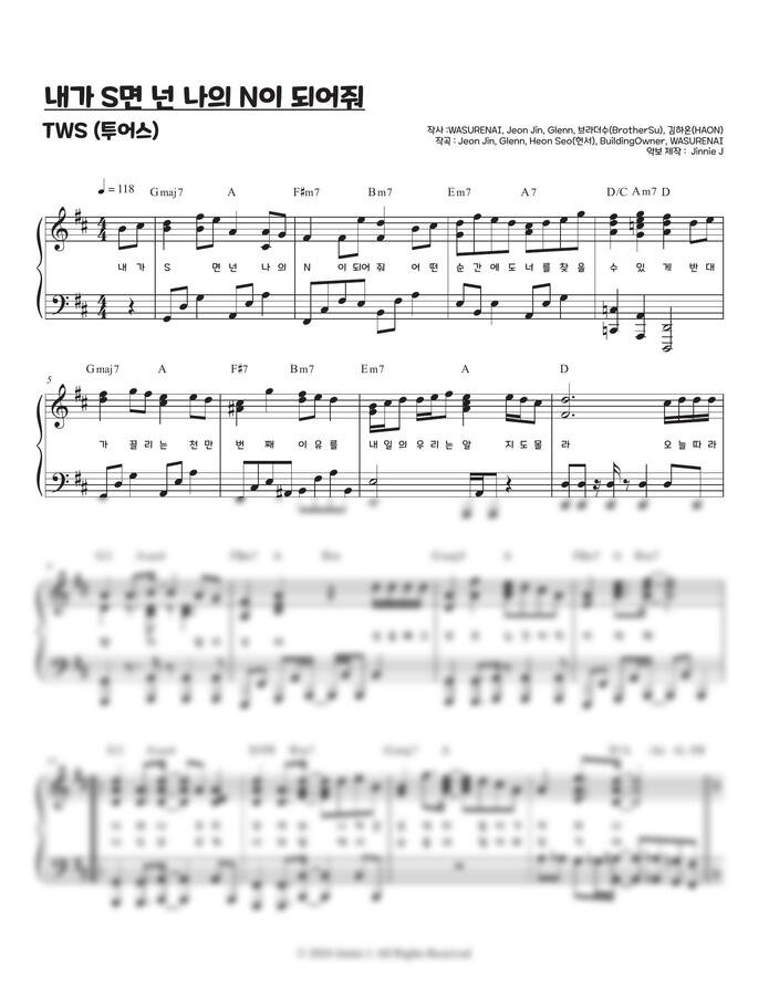 TWS (투어스) "내가 S면 넌 나의 N이 되어줘" 악보입니다.
