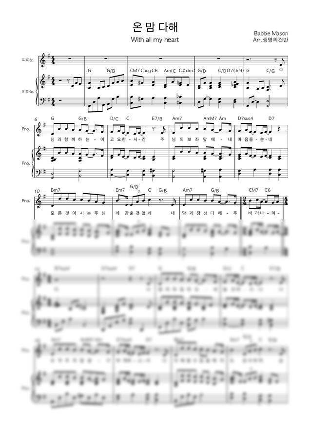 Babbie Mason - 온맘다해(With all my heart) (G key 연주용) by 생명의건반