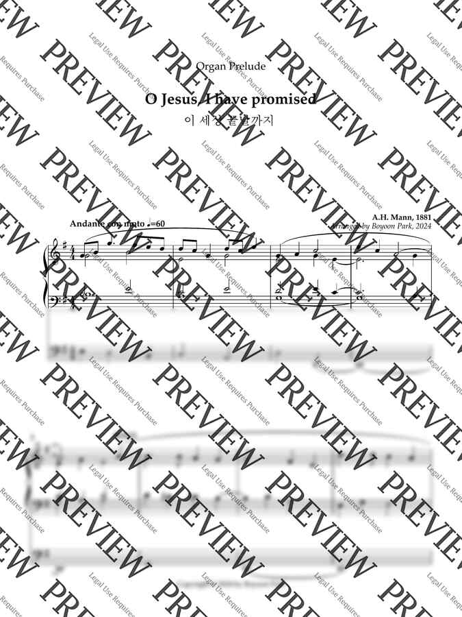 A.H. Mann - 이 세상 끝날까지 / O Jesus, I have promised (오르간 전주곡) by Boyoon Park 1p 미리보기