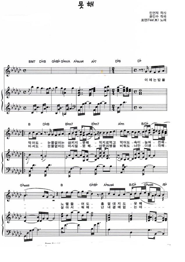 포맨 - 못해 (Feat. 美) (피아노 3단)