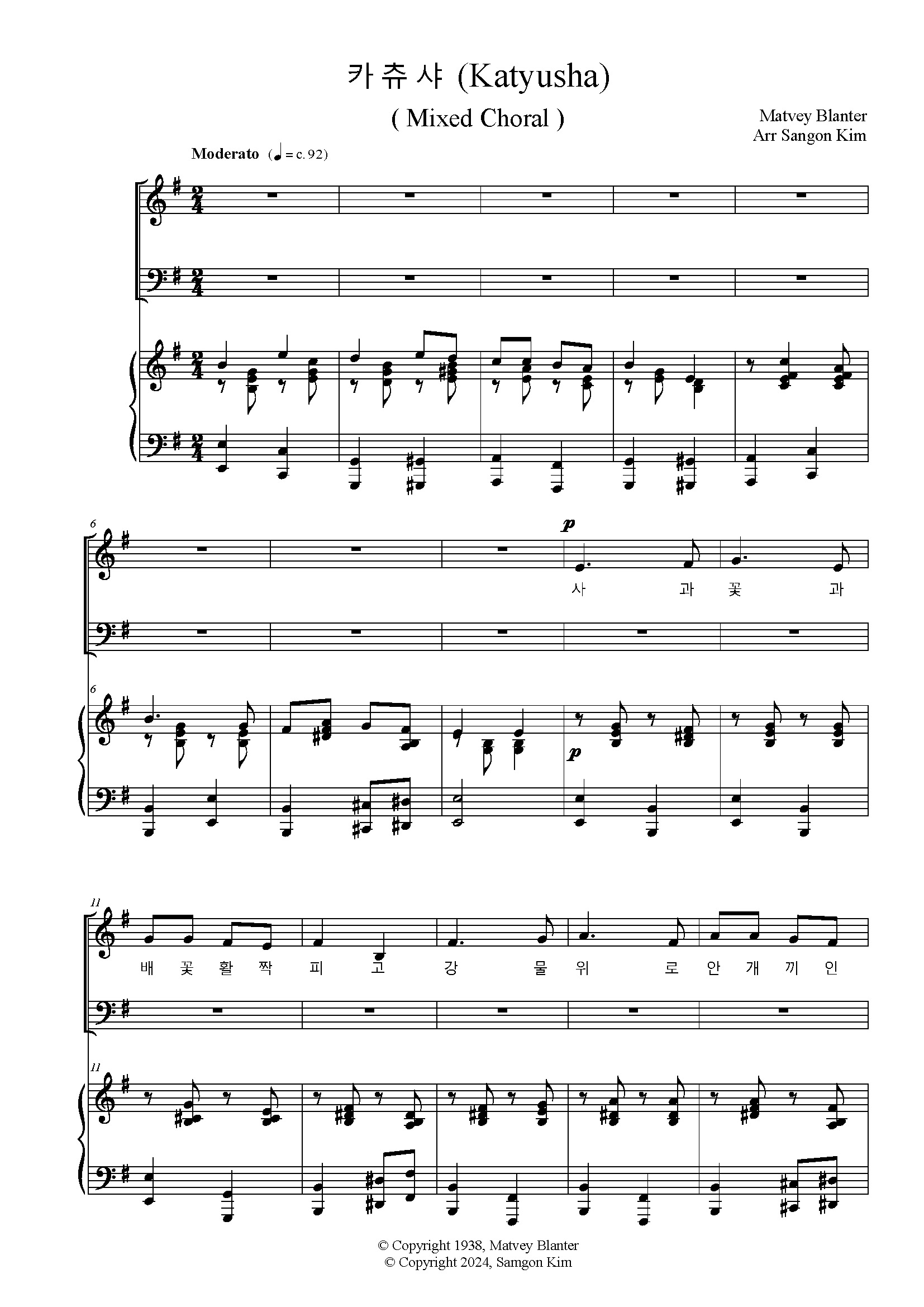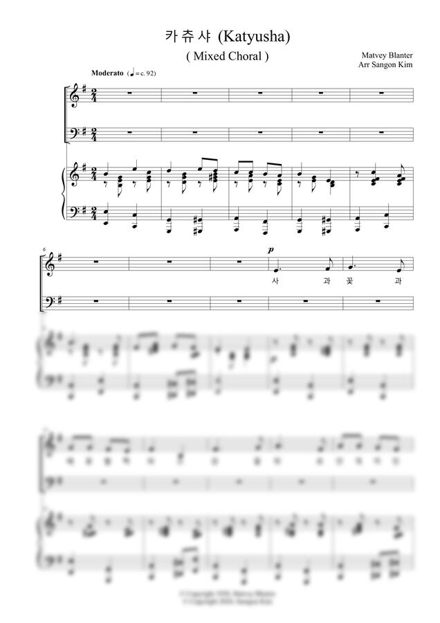 #카츄샤 #혼성합창 #합창악보 #러시아민요 #편곡 #악보 #합창단 #정기연주회 #새로운레퍼토리 #지휘 #합창음악 #아름다운음악 #감동적인음악 #클래식 #합창악보추천 #악보마켓 #세계합창음악악보 #합창편곡