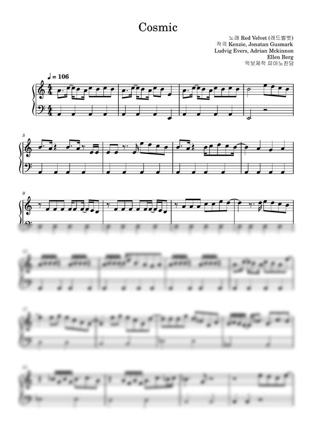 2024년 6월 24일 발표한 레드벨벳의 Cosmic(풀버전)을 피아노악보로 제작했습니다.