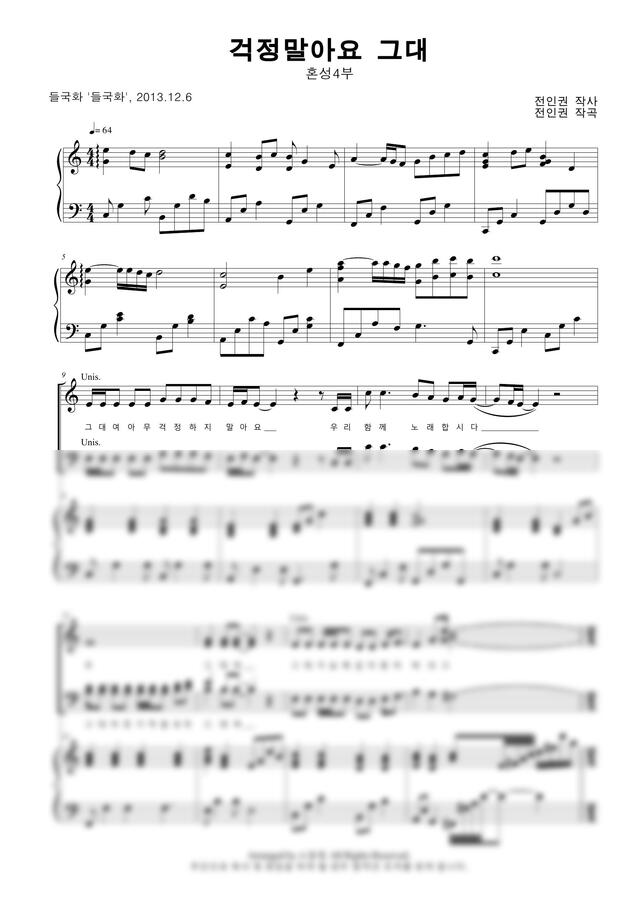 들국화의 걱정말아요 그대를 혼성합창으로 편곡한 악보입니다.