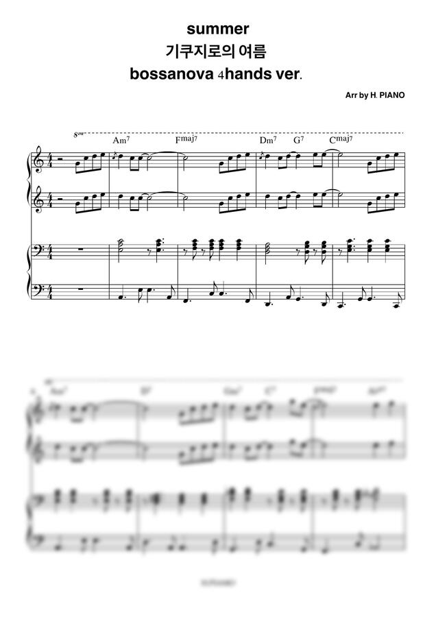 기쿠지로의 여름 summer 곡을 정통 보사노바 포핸즈로 편곡해 보았습니다.