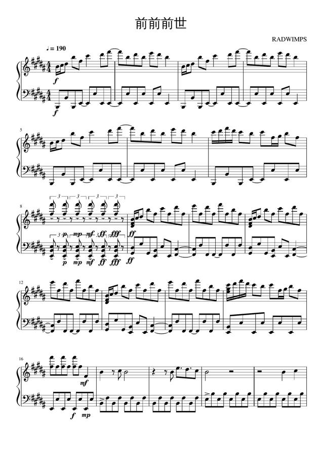 너의 이름은ost인 前前前世(Zen Zen Zense)악보입니다. 모두 세 가지 버젼이고 두 번째 악보는 3단입니다. 즐겁게 치세요.