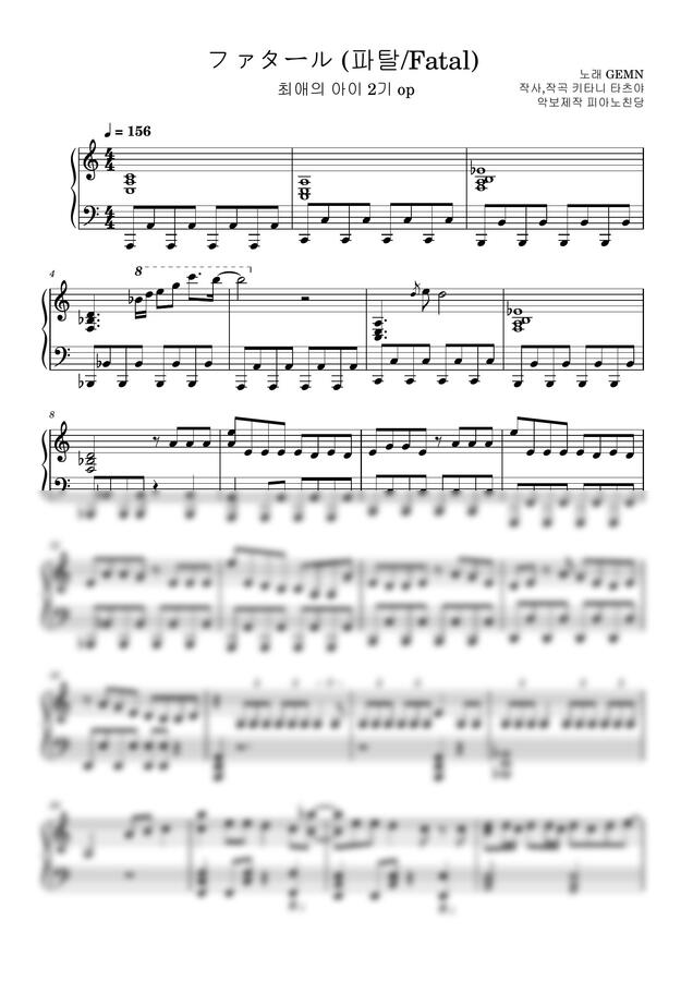 【최애의 아이】 2기 오프닝 '파탈 Fatal' 풀버전을 피아노 악보로 제작했습니다.
