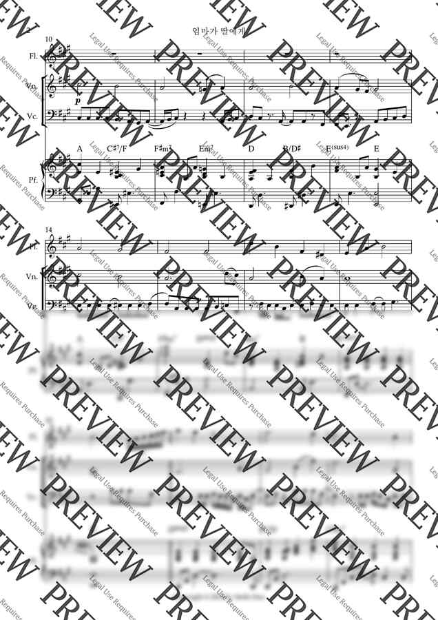 플루트, 바이올린, 첼로, 피아노 구성의 4중주 악보로
