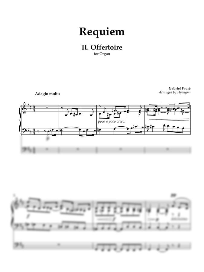 가브리엘 포레의 <레퀴엠> 중에서 두 번째 곡인 'Offertoire'를 오르간곡으로 옮겼습니다. 묵상 전주곡으로 연주하시면 좋을 것 같습니다.