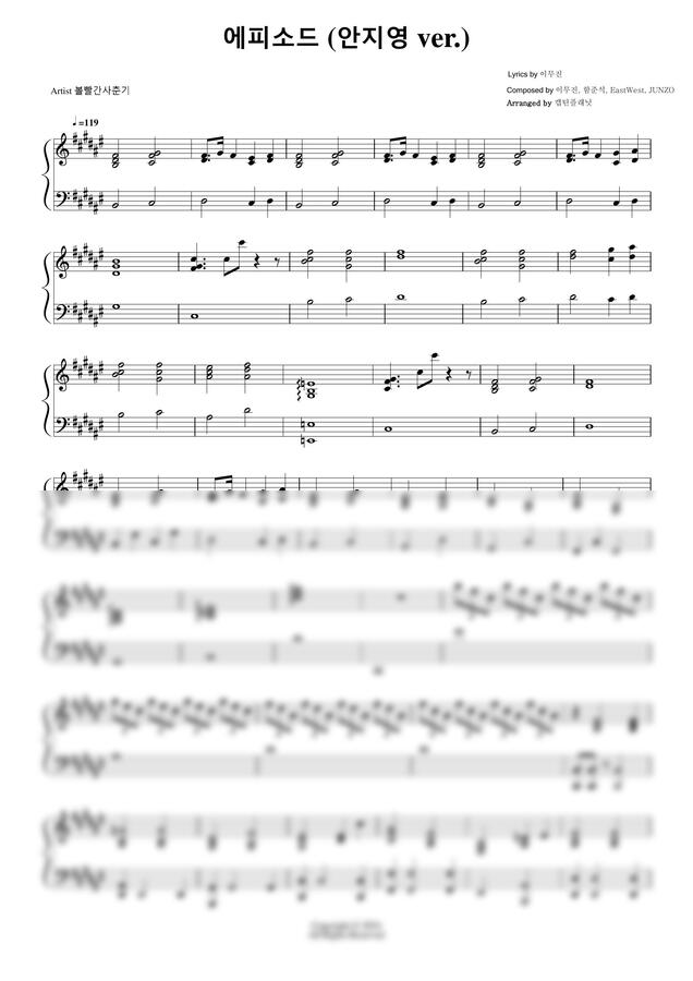안지영(볼빨간사춘기) - 에피소드 피아노반주 MR 악보 by 애용김애용