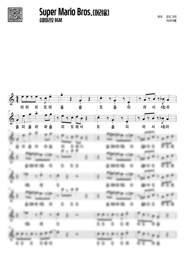 Super Mario Bros. - 슈퍼마리오 BGM (계이름, 어려움) by 리코더쌤