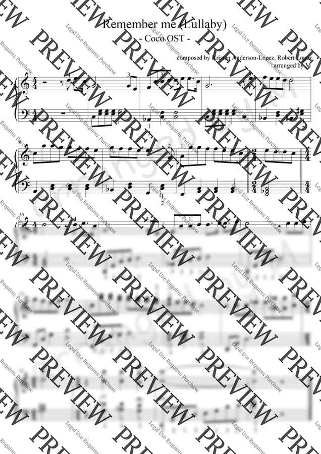 코코 OST - Remember Me 원키/ 옥타브 진행이 없는 피아노 악보 보러 가기
