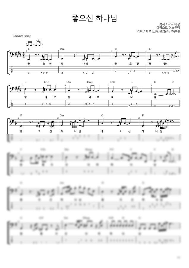 어노인팅 예배캠프 2013에서 나온 "좋으신 하나님"찬양의 베이스기타 악보입니다