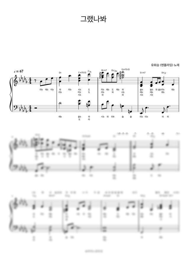 유회승 (엔플라잉) - 그랬나봐 (선재 업고 튀어 OST) (계이름 반주악보) by 피아노정류장0