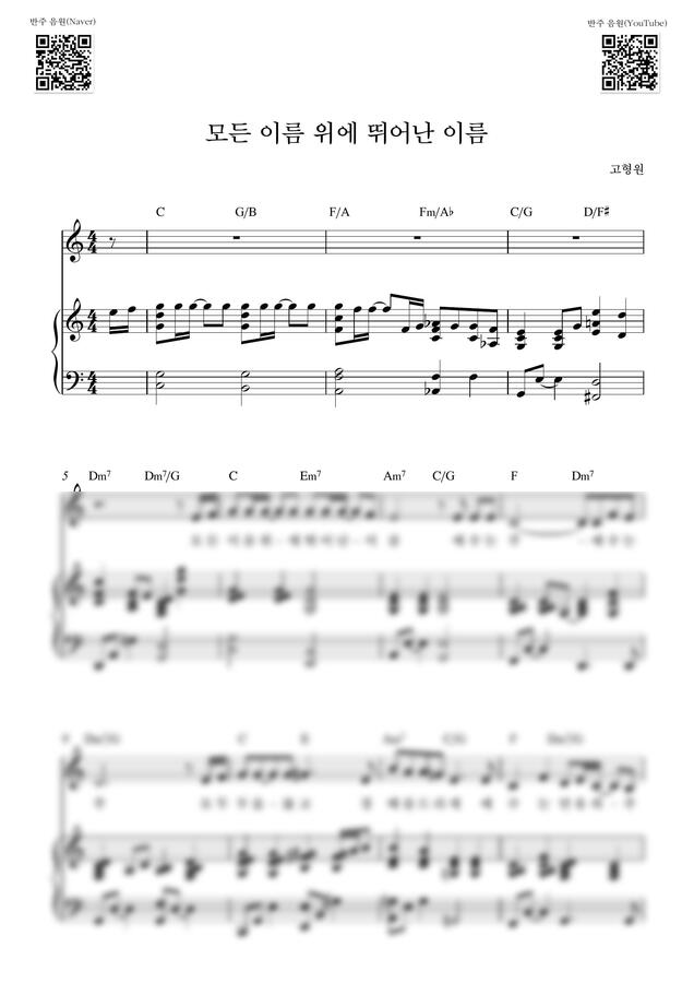 고형원 - 모든 이름 위에 뛰어난 이름_C (피아노 3단) by Samuel Park