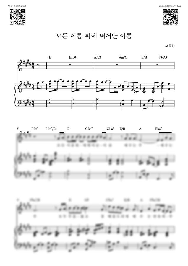 고형원 - 모든 이름 위에 뛰어난 이름_E (피아노 3단) by Samuel Park