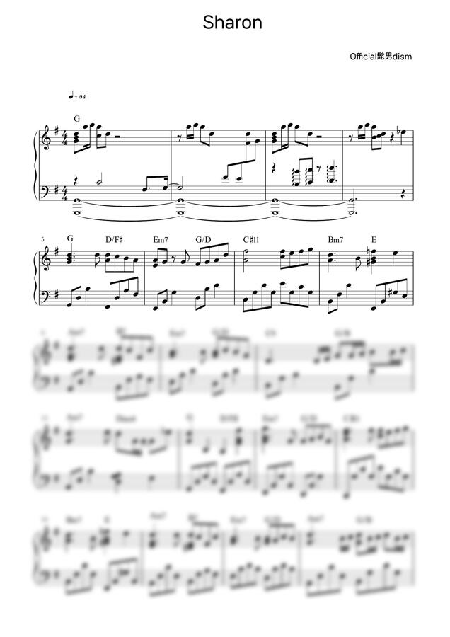 Official髭男dism 오피셜히게단디즘 - Sharon 샤론 (코드 포함) by 피치피아노 1p 미리보기