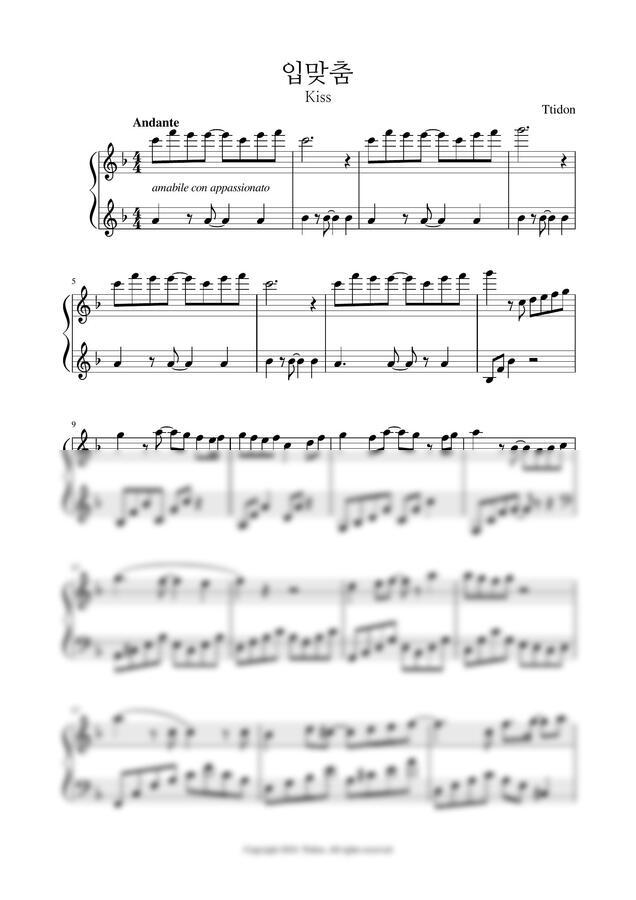 비주얼노벨 시간을 멈추는 피아노 OST '입맞춤' 악보입니다.