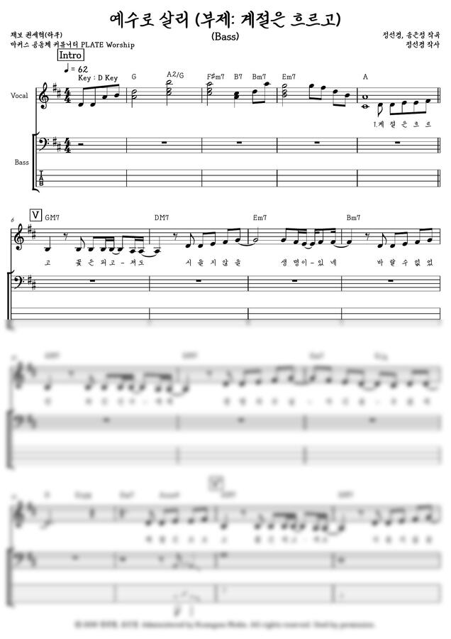 플레이트 (PLATE) - 예수로 살리(계절은 흐르고) ((BASS TAB)) by 권세혁(라쿠)
