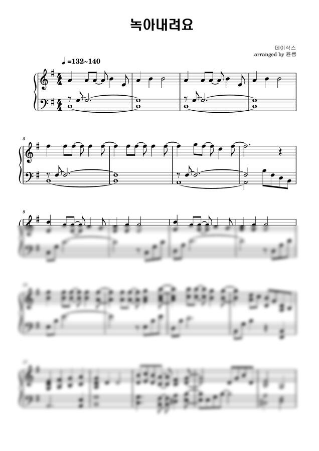 데이식스의 <녹아내려요> 피아노 악보입니다.