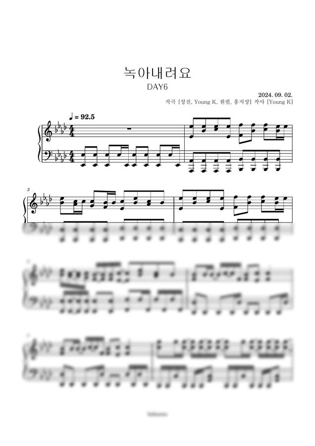 DAY6의 녹아내려요 악보입니다