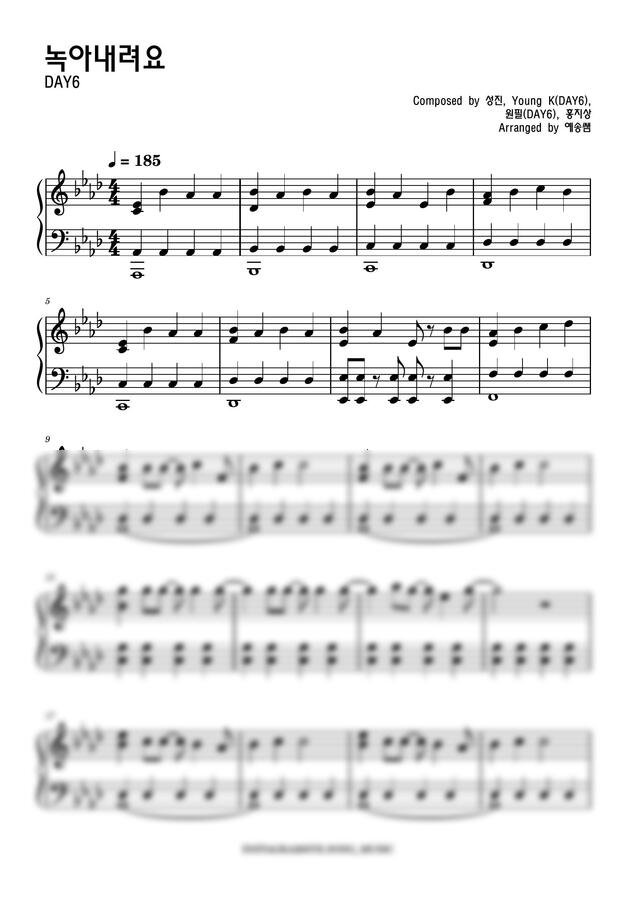 원키악보 그대로 반키 내린 전조 악보를 사용하시면 쉽게 연주 할 수 있어요
