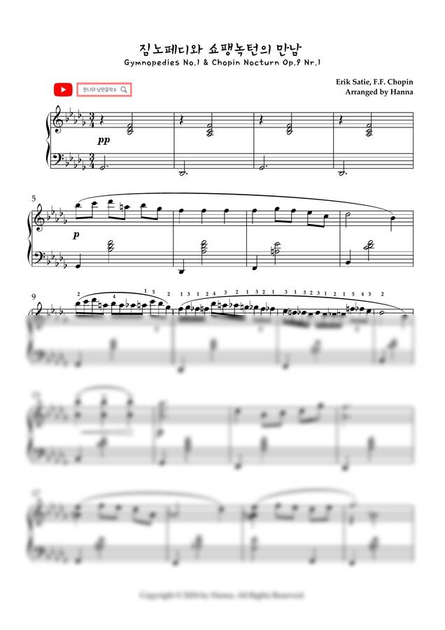 이번에 인사드릴 곡은 에릭사티 짐노페디 1번과 쇼팽 녹턴 Op.9 Nr.1번 두 곡이 만나 새롭게 탄생한 곡입니다.