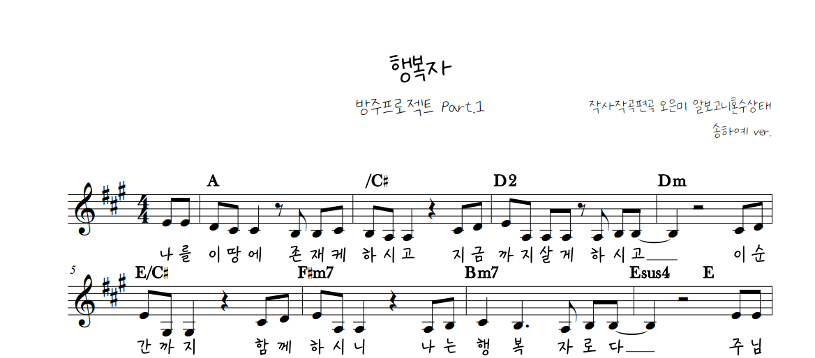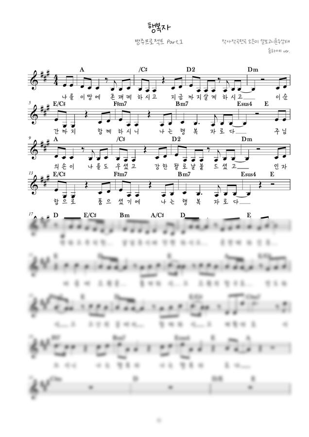 송하예 - 행복자 (A,G,F 코드악보) by 청청이