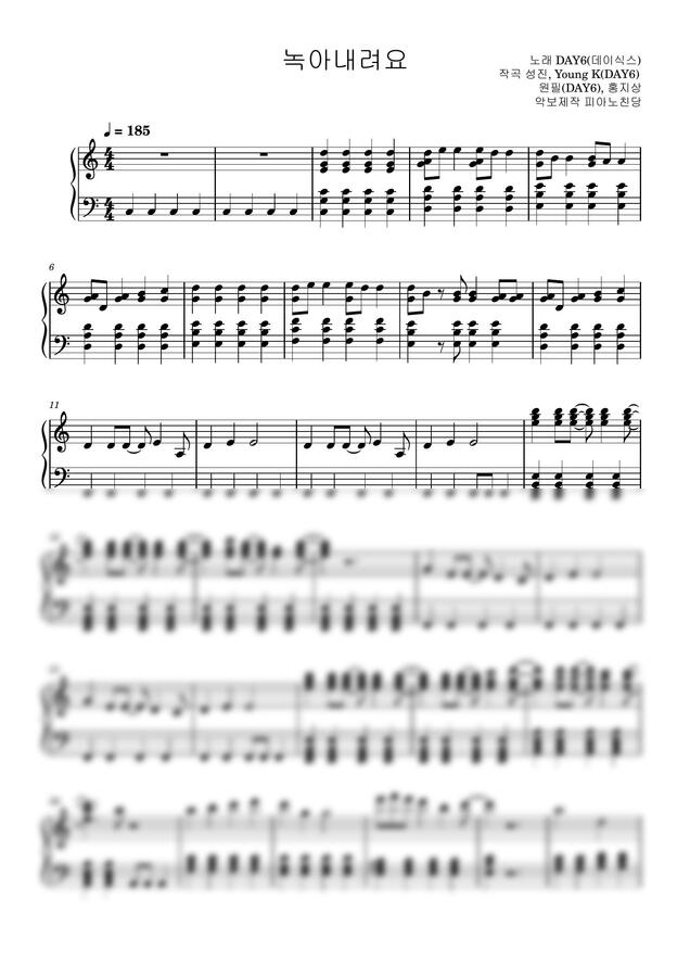 '녹아내려요' 를 피아노 악보로 제작했습니다.