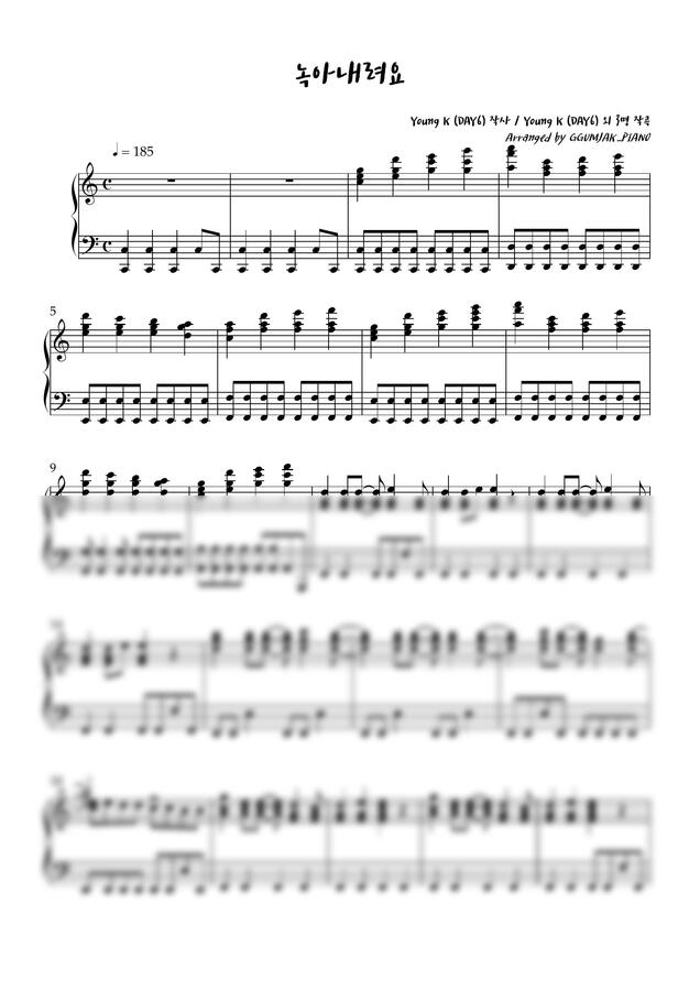 이번 피아노 악보는 DAY6의 "녹아내려요" 입니다.