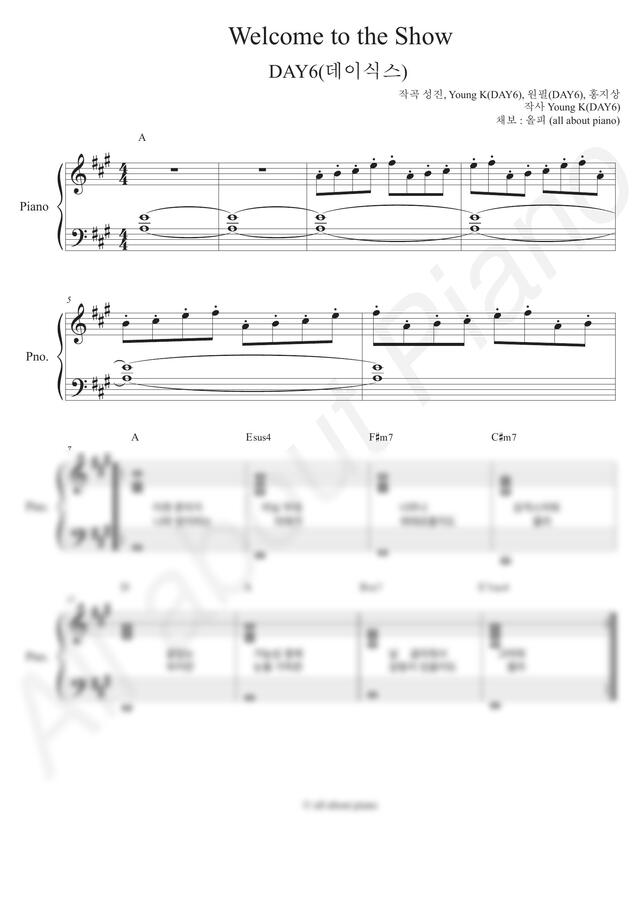 데이식스 - welcome to the show (피아노 반주) by all about piano0