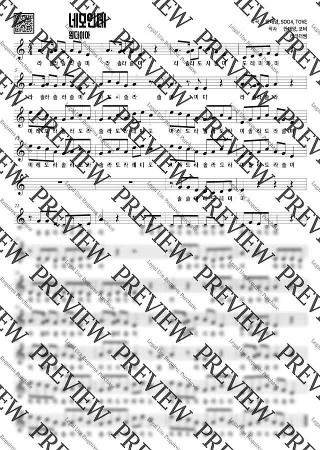 원다이아 - 네모인데 (계이름) by 리코더쌤 1p 미리보기