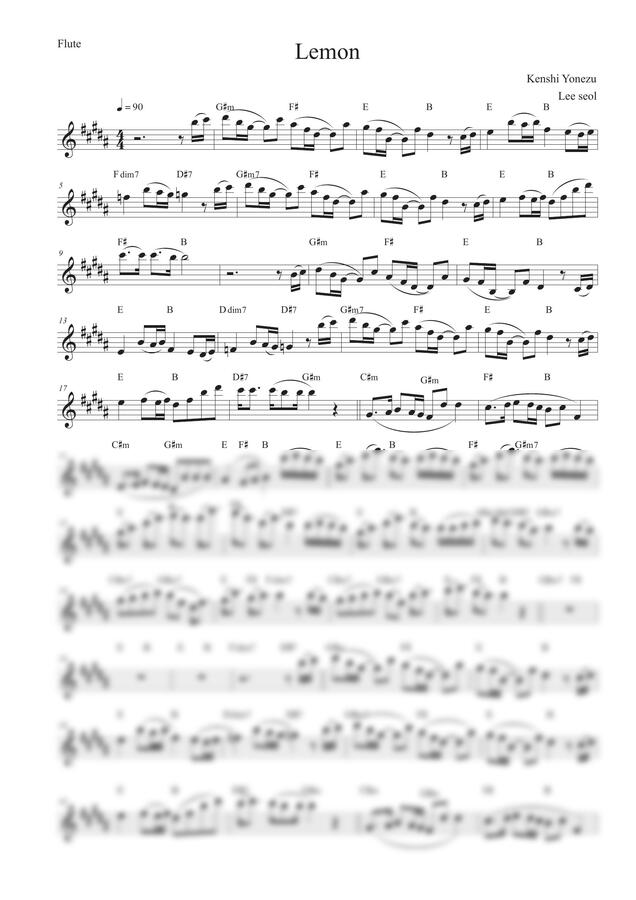 Kenshi YonezuのLemonフルート楽譜です