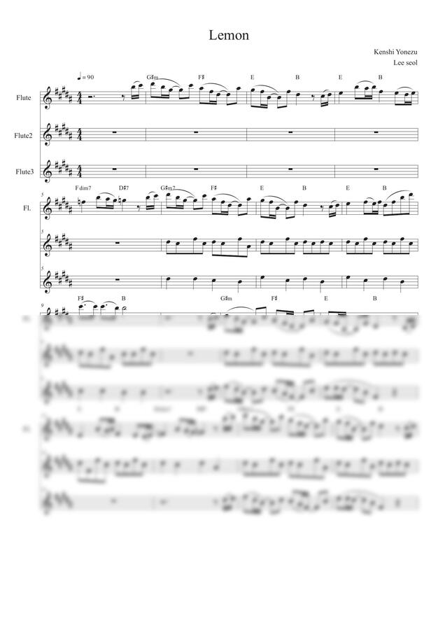 Kenshi Yonezu 의 Lemon 플루트 악보 입니다