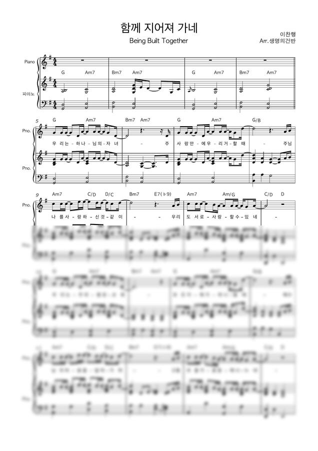팀룩워십 - 함께 지어져 가네(Being built together) (G key 연주곡) by 생명의건반