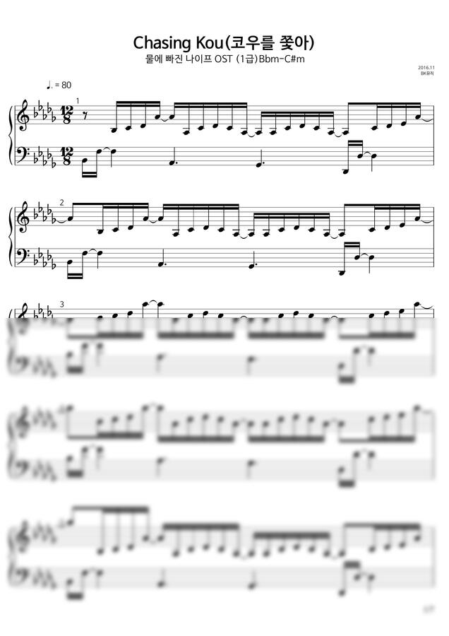 물에 빠진 나이프 OST - Chasing Kou(코우를 쫓아)피아노악보4종류물에 빠진 나이프 OST - Chasing Kou(코우를 쫓아)피아노악보4종류
