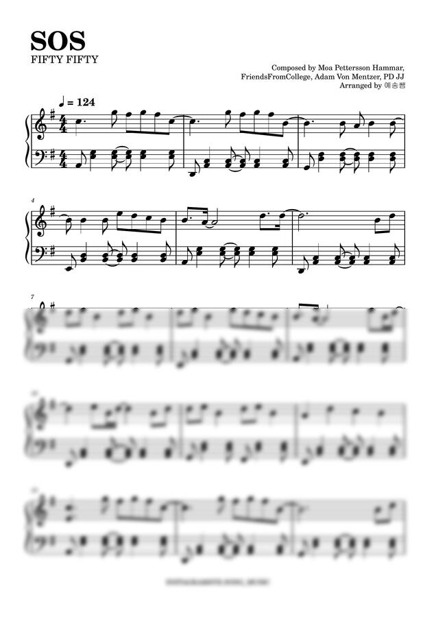원키 악보 그대로 전조한 G key악보입니다
